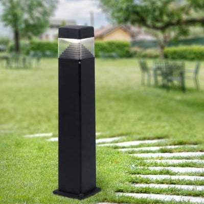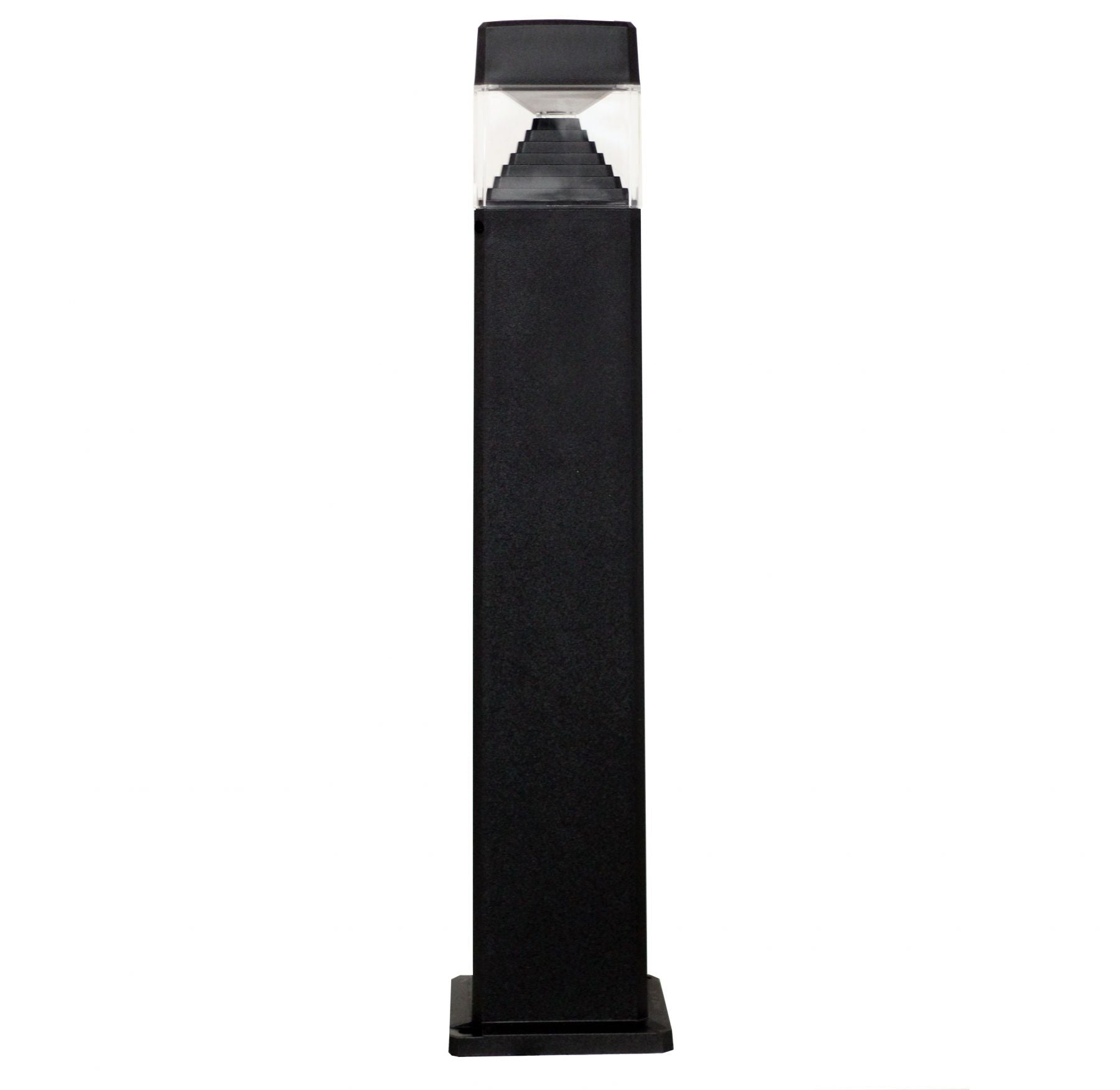 Part of the Fumagalli Ester range, this modern style bollard light is made of shockproof resin material, UV-rays stabilized, rust and corrosion-free. Provided black stepped shape reflector, clear diffuser and supplied with TÜV approved, long-life 10W GX53 LED bulb. Insulation class II, protection rating IP55.