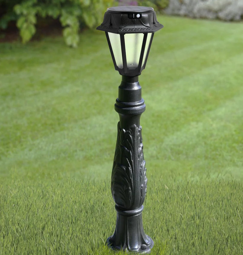 SOLAR lantern in classic style with motion sensor and replaceable battery. Made of shockproof resin material, UV-rays stabilized, rust and corrosion-free. Modular construction suitable for post top and wall installation. Provided with TÜV-CB certified, Kelvin settable LED solar module, adjustable in three different working mode. Automatic ON/OFF. Insulation class III, protection rating IP55.