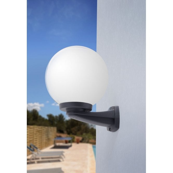 Ø 250 mm PMMA globe, complete with modern globe base made of shockproof resin material, UV-rays stabilized, rust and corrosion-free. Suitable for post top or wall installation. Supplied as optional with TÜV-CB certified, long-life and efficient LED lamps suitable for outdoor use. Insulation class II, protection rating IP55.