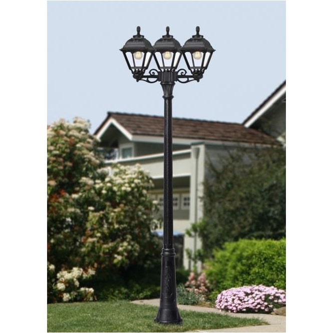 Part of the Fumagalli Cefa range, this is a 2450mm post with 3 x E27 classic style square lanterns. The Fumagalli post is a structural metal pole covered with a shockproof resin material making it rust and corrosion-free. Insulation class II, protection rating IP55.