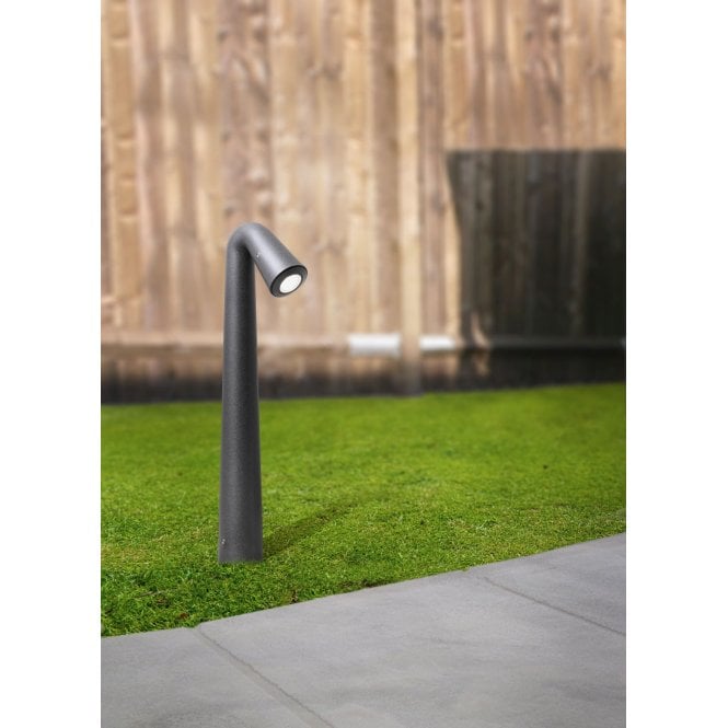 LED lamp with modern design and directed light emission, made of shockproof resin material, UV-rays stabilized, rust and corrosion-free. Suitable for spike and ground installation. Supplied with TÜV-CB certified, long-life and efficient G9 LED lamp included. Insulation class II, protection rating IP66. Available in black, grey and white.