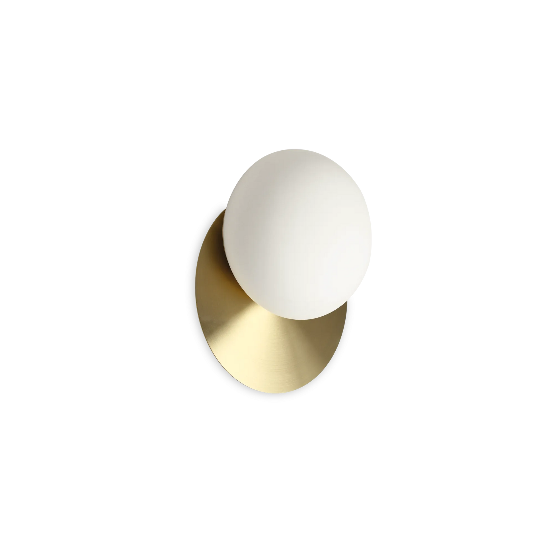 Plated or powder-coated metal base. White overlay, acid-etched blown glass diffusers. Available finishes: white or satin brass.
