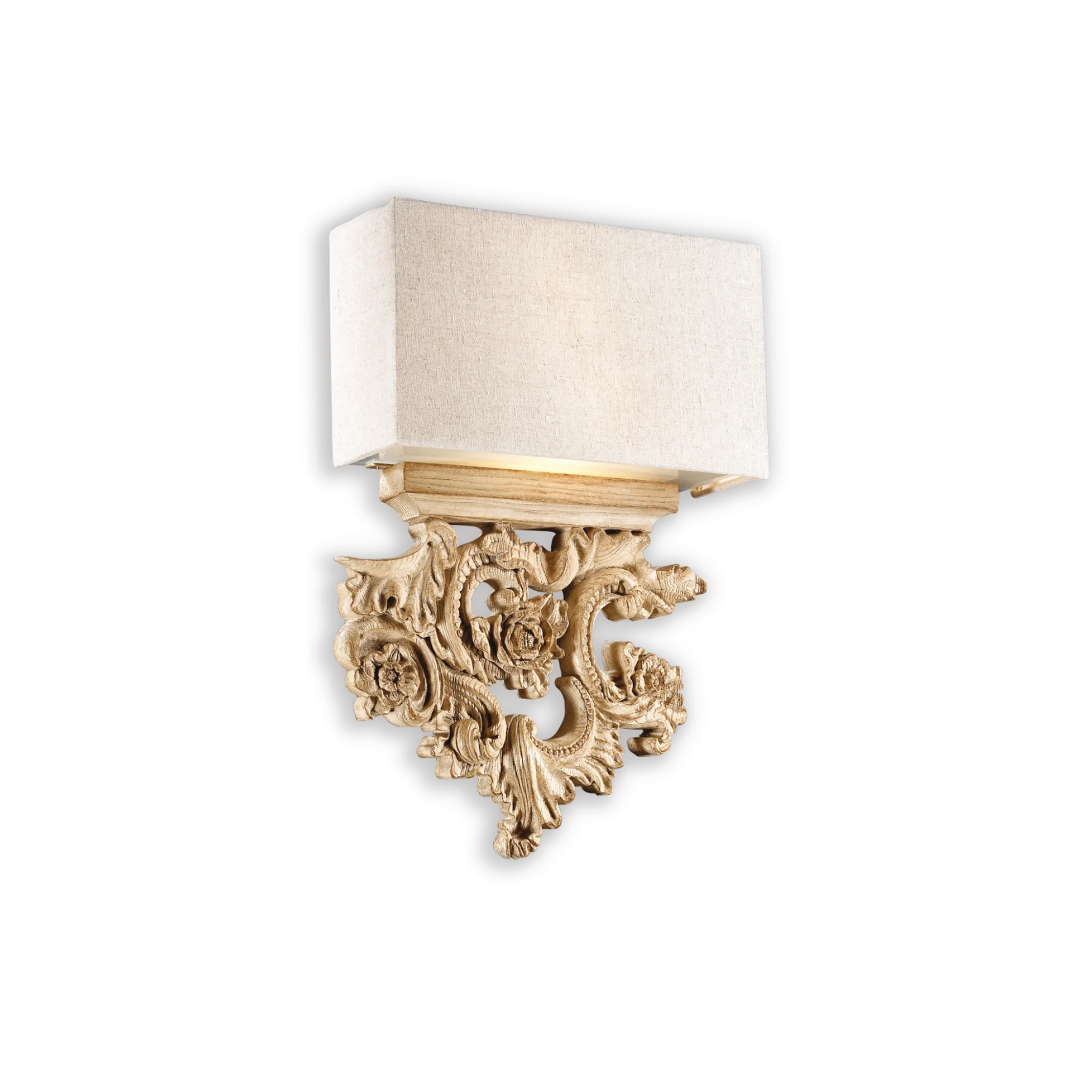 The Paula Wall Light features a resin frame meticulously handcrafted to replicate the intricate details and texture of carved wood. This expert craftsmanship ensures a sophisticated and authentic aesthetic, combining durability with classic design to enhance any interior space with timeless elegance.
